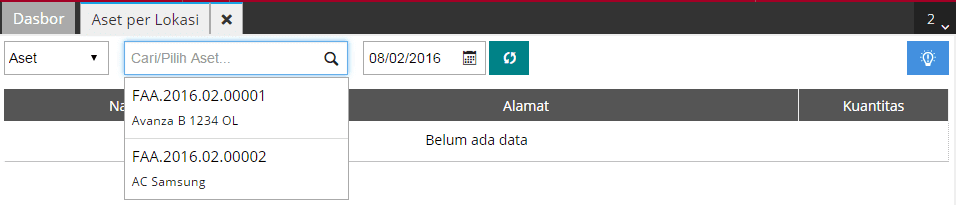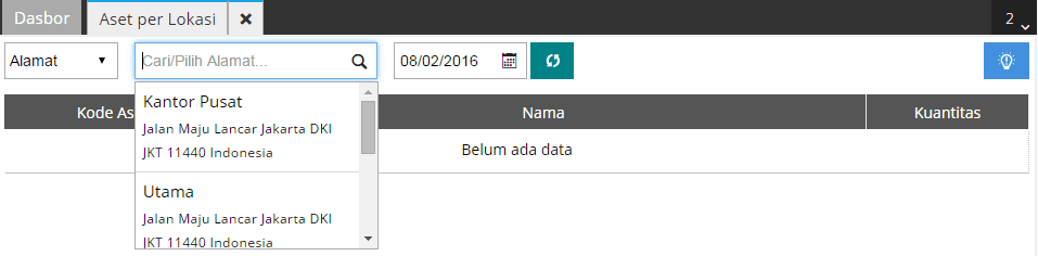 2. Kamu dapat menentukan filter untuk menyajikan tampilan Daftar Aset Per Lokasi, dengan cara memilih tipe filter, apakah berdasarkan Aset atau Alamat.