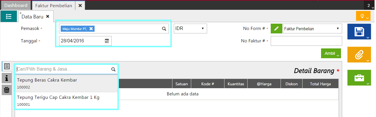 4. Ulangi langkah 2 dan 3 lagi kembali untuk memasukan barang & jasa selanjutnya.