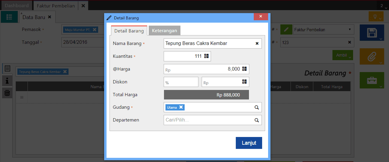 3. Kemudian tentukan informasi detail atas barang yang akan kamu beli, lalu klik Lanjut.