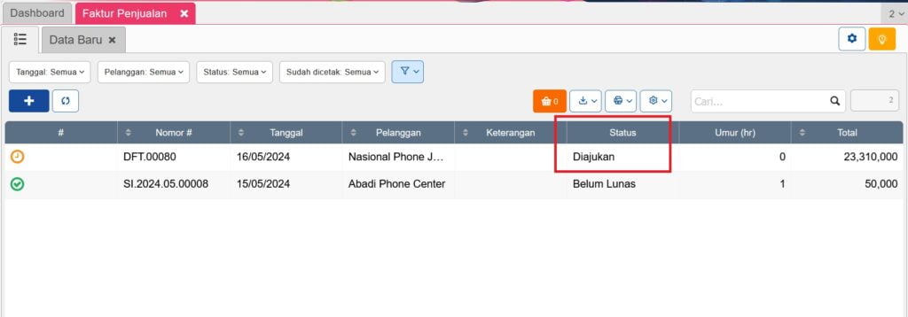 2. Pengguna dengan level operator sudah melakukan penginputan transaksi yang perlu disetujui tersebut dan sudah menyimpannya dalam bentuk draft seperti berikut ini.