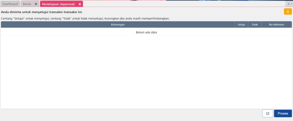 5. Jika transaksi tersebut sudah berhasil terproses, maka transaksi yang sudah kamu setujui akan hilang dari fitur persetujuan.