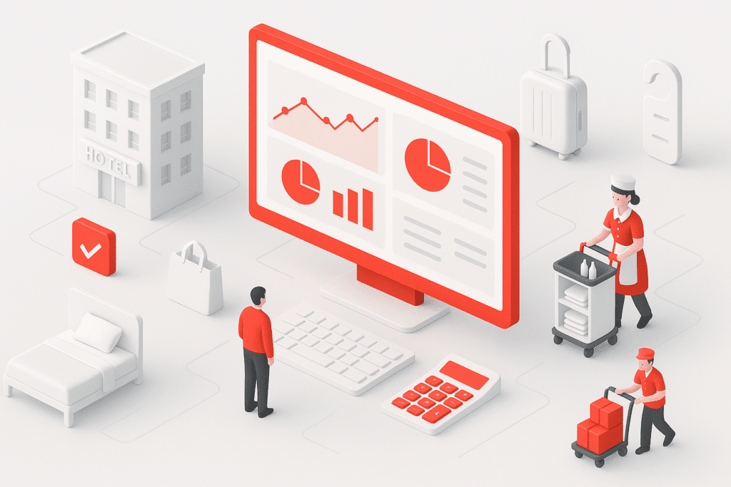 Software akuntansi hotel adalah sistem yang membantu mencatat pemasukan dari reservasi kamar dan layanan tambahan, mengelola pengeluaran operasional hotel, memantau stok perlengkapan, serta menyusun laporan keuangan secara otomatis dan real-time.