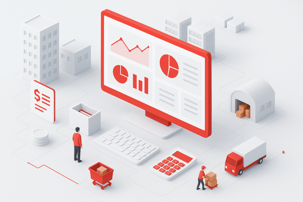 Software akuntansi perusahaan dagang adalah sistem yang membantu bisnis dalam mencatat transaksi jual beli, mengelola stok barang, memantau arus kas, dan menyusun laporan keuangan secara otomatis dan real-time.